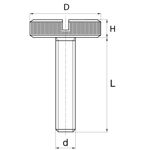 Dies ist eine Vollgewindeschraube mit einem großen, geschlitzten Rändelkopf mit 19,5 mm Durchmesser.