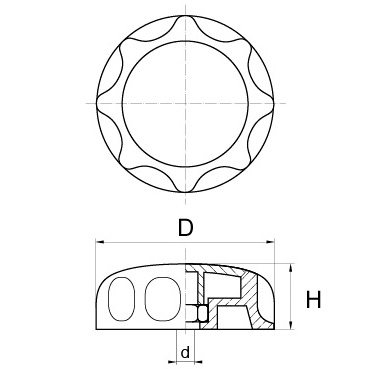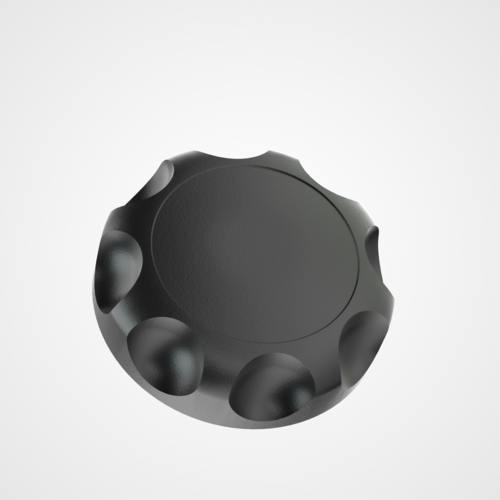 Diese flache Sterngiffmuttern besteht aus einem schwarzen Polyamidteil und einem verzinkten Stahleinsatz. Dies ist das Modell BPF 540.