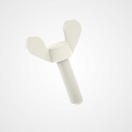 This wing screw is a plastic screw with a rounded shape and is fully threaded. Wing screws are a German shape similar to DIN 316. They are designed to be tightened and loosened by hand.