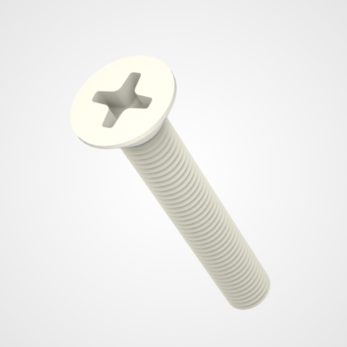 This metric countersunk head screw is manufactured to DIN965 standard. It has a philips style head to suite that style of screwdriver and is made from polyamide (nylon). Other materials are available on request.