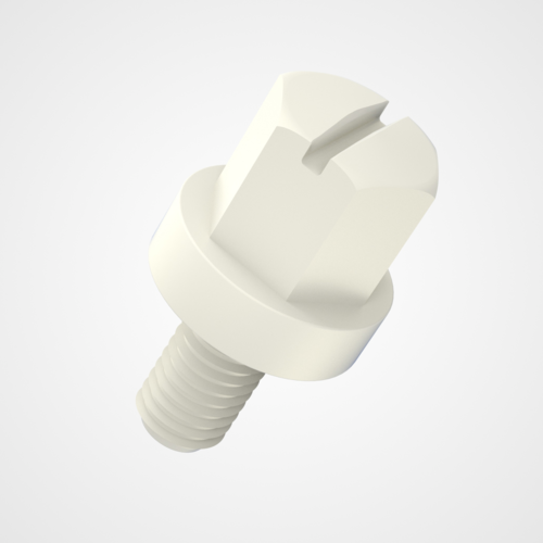 This hexagon head (hex head) screw is part of our PLAS range of hex heads (see PLAS180/PLAS186/PLAS187) moulded with a load bearing collar under the head. PLAS182 is also slotted providing two options for tightening. The head/collar dimensions are the same for all sizes.