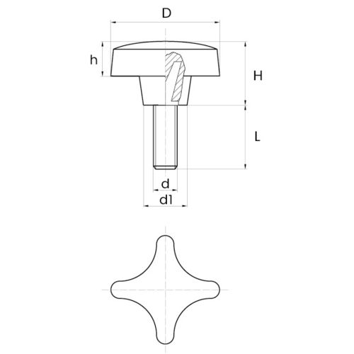 This bi-material screw is part of the plastometallic screw range. This cross button is an easy-to-use clamping element. Its star shape allows a good grip.