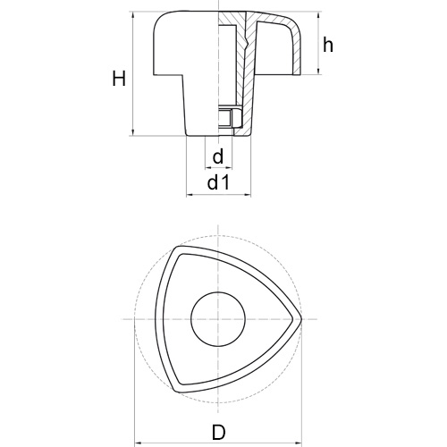 Triangular Thumb Screw Female Nylon Head Metal Insert BPF 195, BPF 200
