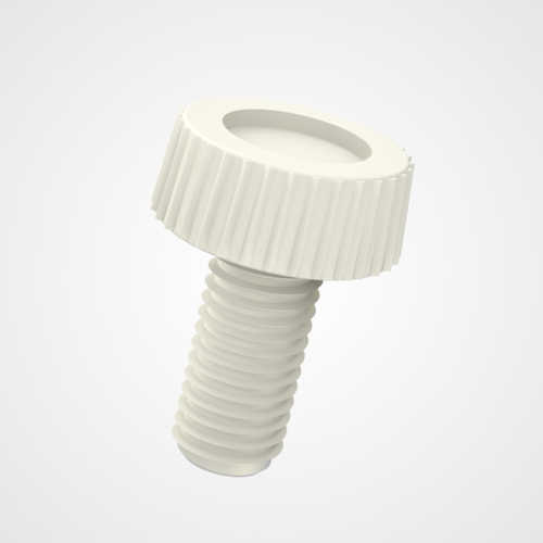 El tornillo de cabeza moleteada PLAS 91 puede usarse a mano, lo que permite apretarlo o aflojarlo en lugares de difícil acceso sin necesidad de herramientas.
