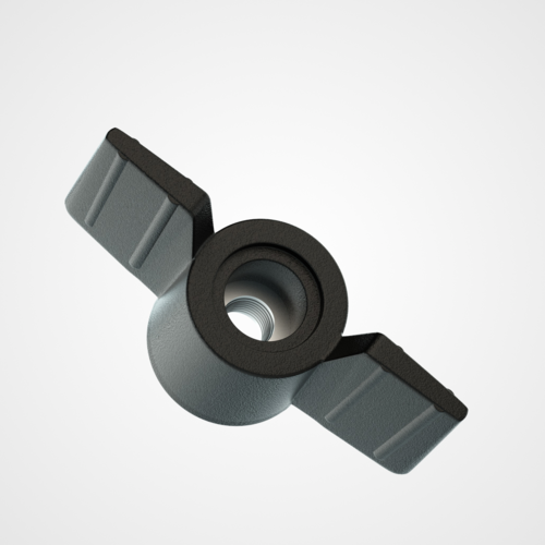 Il s'agit d'un écrou plastométalliques à savoir bi-matière nylon noir / acier zingué. C'est le modèle BPF 60. En effet, cet écrou surmoulé en nylon noir, est composé d'oreilles rectangulaires striées de longueur 41 mm sur 20 mm.