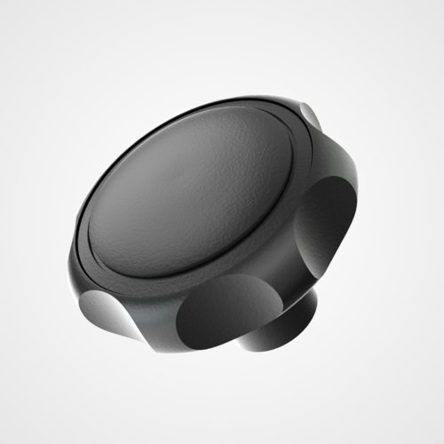 Il s'agit d'un volant en nylon noir taraudé, avec un insert en acier zingué. Modèle disponible en standard en plusieurs diamètres de tête : 40, 50, 63 et 80 mm, ou sur-mesure avec un insert femelle en titane, nylon, inox, aluminium ou laiton.