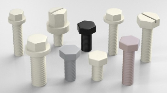 • un'ampia gamma di viti in plastica: viti a testa esagonale, viti a testa svasata, viti a testa tonda, viti di fissaggio, viti di montaggio, viti ad alette, ecc.