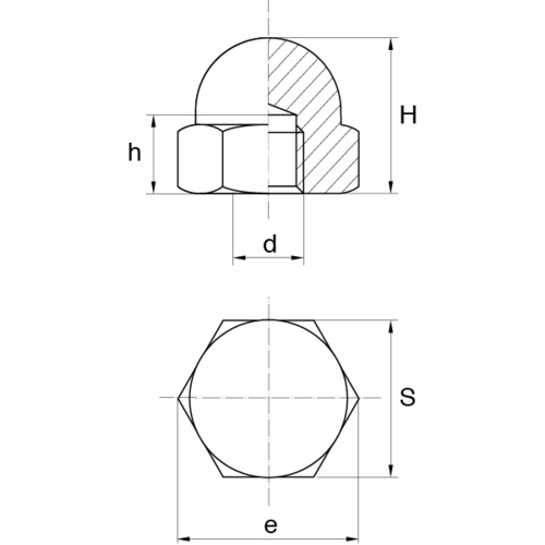 Si tratta di un dado cieco esagonale alto di tipo A. I dadi ciechi servono a stringere le viti proteggendole. Questi dadi a cupola hanno uno scopo estetico offrendo una presentazione finita e professionale dell'assemblaggio.