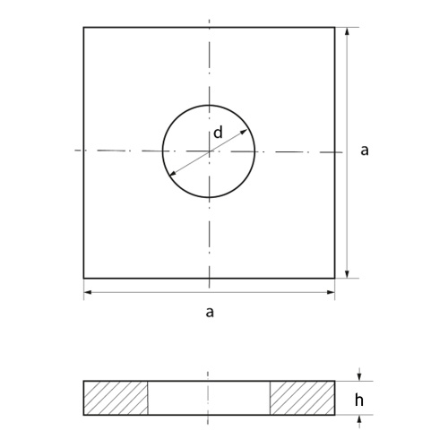 È una rondella piatta di forma quadrata conforme alla norma DIN 436. Queste rondelle a forma di piastra sono consigliate per un uso con dei supporti duri come il legno. Il taglio ampio della base assicura una migliore aderenza sulla superficie da fissare.