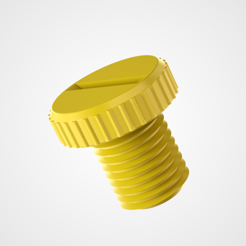 Si tratta di un tappo filettato e zigrinato in plastica. Sono realizzati in PE-HD giallo e hanno un diametro di 12,5 mm.